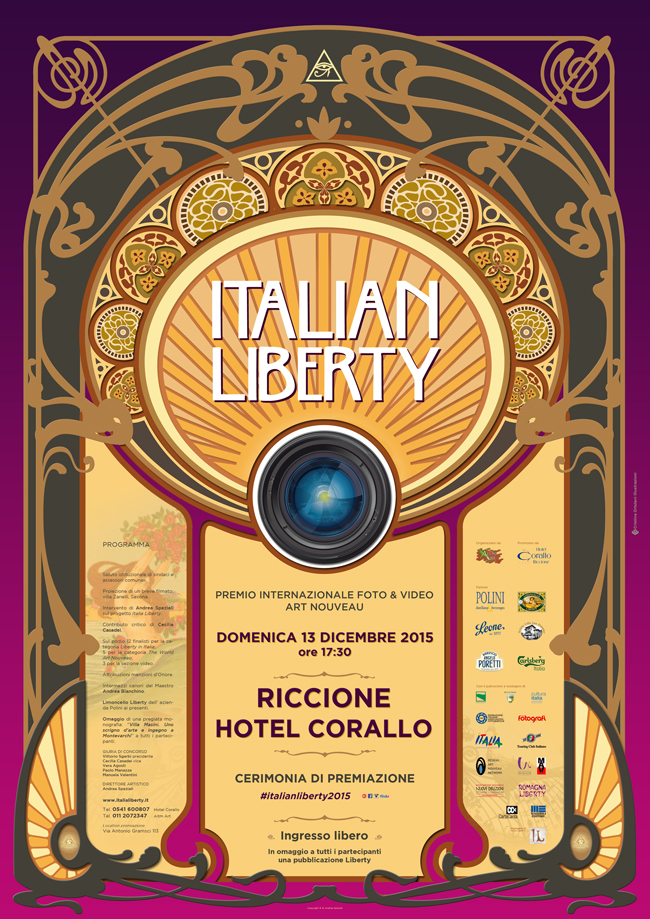 Il premio Italian Liberty ha inteso e intende appassionare i giovani e i meno giovani al progetto culturale che rientra all’interno dell’iniziativa Italia Liberty, nata con l’intenzione di censire il patrimonio architettonico nella penisola, tra fine ‘800 e inizi ‘900. Numerosissime le foto in concorso, 821 partecipanti su 1028 iscritti oltre ogni più rosea previsione, un autentico patrimonio che ha consentito di portare alla ribalta diversi luoghi ispirati alla “Art Nouveau” ancora da riscoprire nella loro bellezza. E’ fuor di dubbio che la grande mole di materiale fotografico, giunta alla segreteria del Premio, sia testimonianza del gradimento che l’iniziativa ha incontrato, non solo fra i professionisti, ma, anche, e soprattutto fra i giovani delle scuole di ogni ordine e grado, oltre agli amanti della bellezza e dei valori di cui il Liberty è portatore. Saranno venti le opere premiate nelle categorie ‘‘Liberty in Italia’’, ‘‘Video’’ e ‘‘The World Art Nouveau’’ a insindacabile giudizio di una giuria di esperti presieduta da Vittorio Sgarbi con Cecilia Casadei, Vera Agosti, Paolo Manazza e Manuela Valentini che assegneranno assieme al direttore artistico Andrea Speziali i riconoscimenti domenica 13 dicembre, all’Hotel Corallo di Riccione nel corso di una cerimonia, aperta al pubblico, che inizierà alle ore 17,00 con una esposizione di opere d’arte contemporanea.