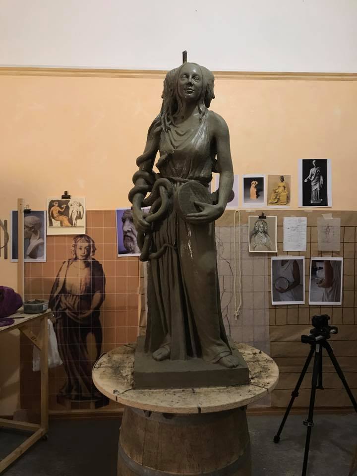 Mi racconta del suo nuovo progetto, “cercato” dentro il Museo Archeologico di Polizzi Generosa: la ricostruzione della statua di “Iside Triforme”, andata distrutta nel XVIII secolo. La singolare scultura presentava tre teste (un vecchio, una donna, un giovane), poggiate su una figura di donna che teneva due serpenti nella mano sinistra e una forma tonda in quella destra.