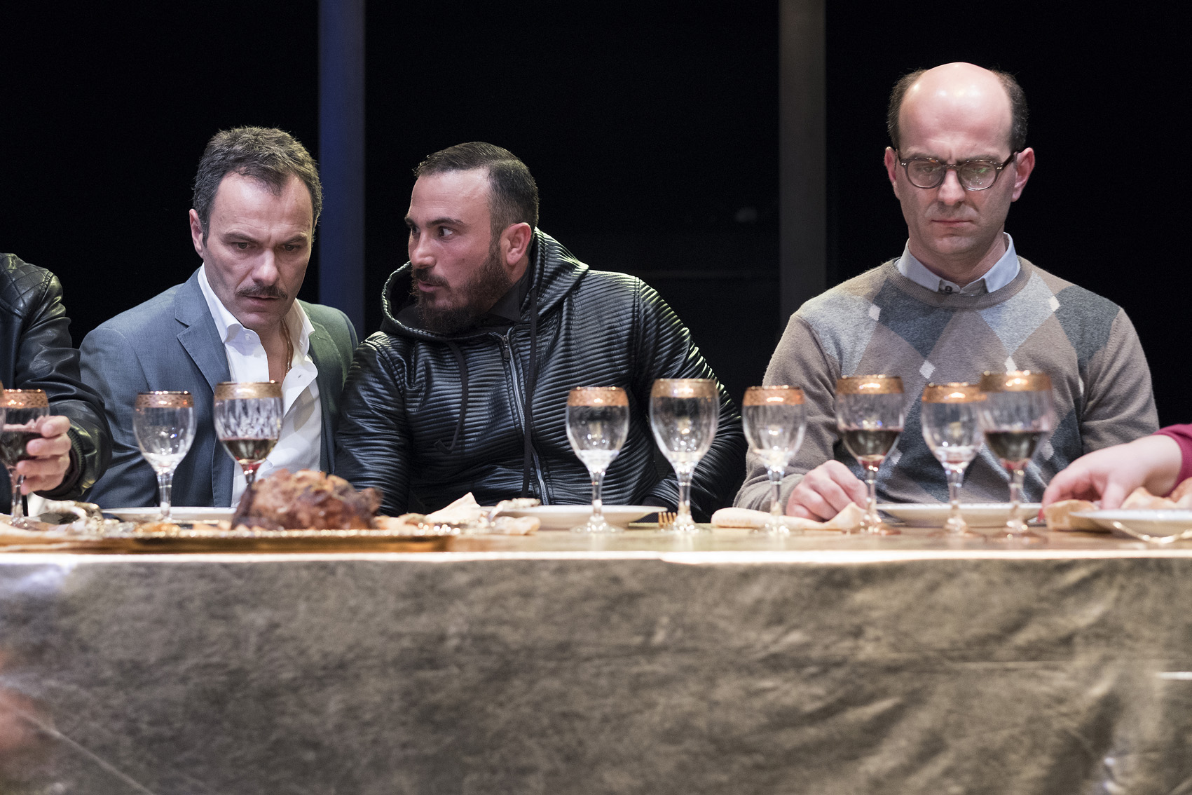 Se nell’originale Antonio Barracano era crepuscolare, qui l’età si abbassa – per lui e per tutti – proprio come accade nella contemporaneità. Francesco Di Leva è magnetico nel dar corpo a un giovane “uomo d’onore”, che, supportato dal dottore – l’altra faccia della medaglia – vorrebbe provare a far girare il mondo in maniera “più quadrata”. In una scena nera, puntellata da elementi in plexiglas e acciaio, è tracciato un ideale labirinto, dentro cui si posson cogliere altri simboli ed emblematica diventa l’ultima cena, apparecchiata con ritualità. In virtù di un rispettoso rimescolar le carte del testo di partenza, non aspettatevi il finale noto.