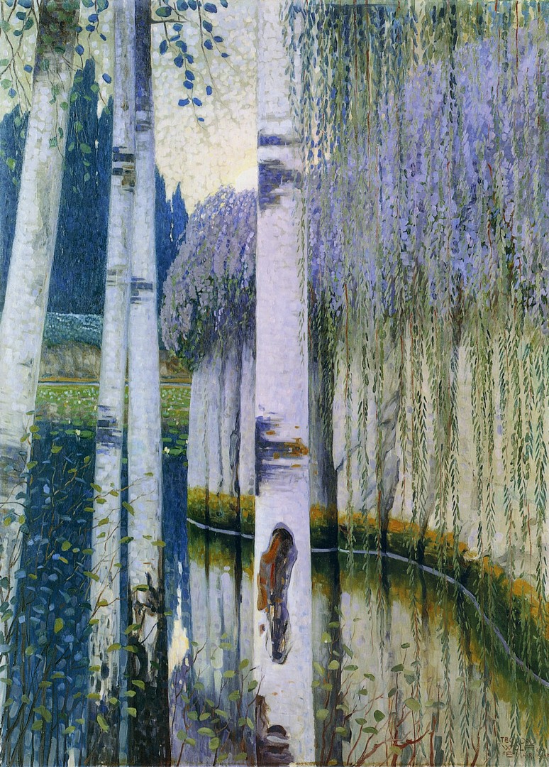 Luce e colore irrompono nel secondo decennio con decorazioni su vetro come quelle dei tre pannelli liberty Paesaggio, Case, Betulle, del 1912, negli oli su tela come Betulle, 1916, e Betulle e glicini del 1918. Opere che risentono dei pittori d’ avanguardia di Pont-Aven, Gauguin, Bonnard, Sérusier, nabis, fauves.