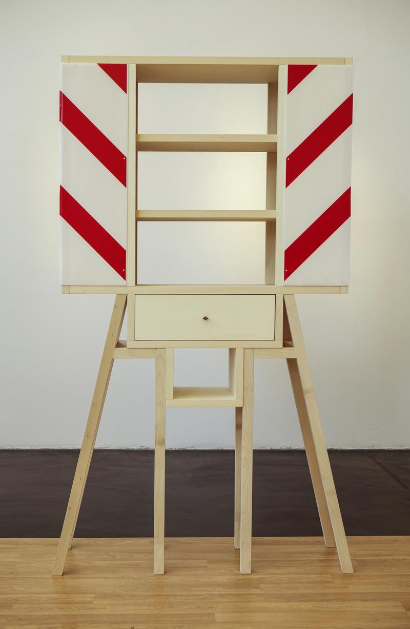 Il piano superiore è dedicato a Ugo La Pietra, grande architetto, designer, cineasta, musicista, da sempre instancabile sperimentatore, del quale si assiste a un lungo e preciso percorso, che inizia con la produzione degli ’70, arrivando fino alla sala nella quale vengono presentati i suoi film. Sono circa cento le opere presentate, in cui l’autore evoca la sua attenzione verso i “luoghi”, distinguendo tra quelli che sono i luoghi oggettivi (quelli che ci circondano), da quelli che invece facciamo propri, dopo averli rielaborati nel nostro intimo. Si tratta di un modo per rendere artistico anche ciò che nella realtà non lo è, in un processo che lo stesso La Pietra nomina “riconversione progettuale”, dove oggetti di arredo urbano divengono veri e propri arredi domestici dal raffinato design – l’opera in cui questo emerge con maggiore chiarezza è la Casa Aperta, una grande installazione dove elementi come birilli e cartelli segnaletici compongono un armonioso allestimento.