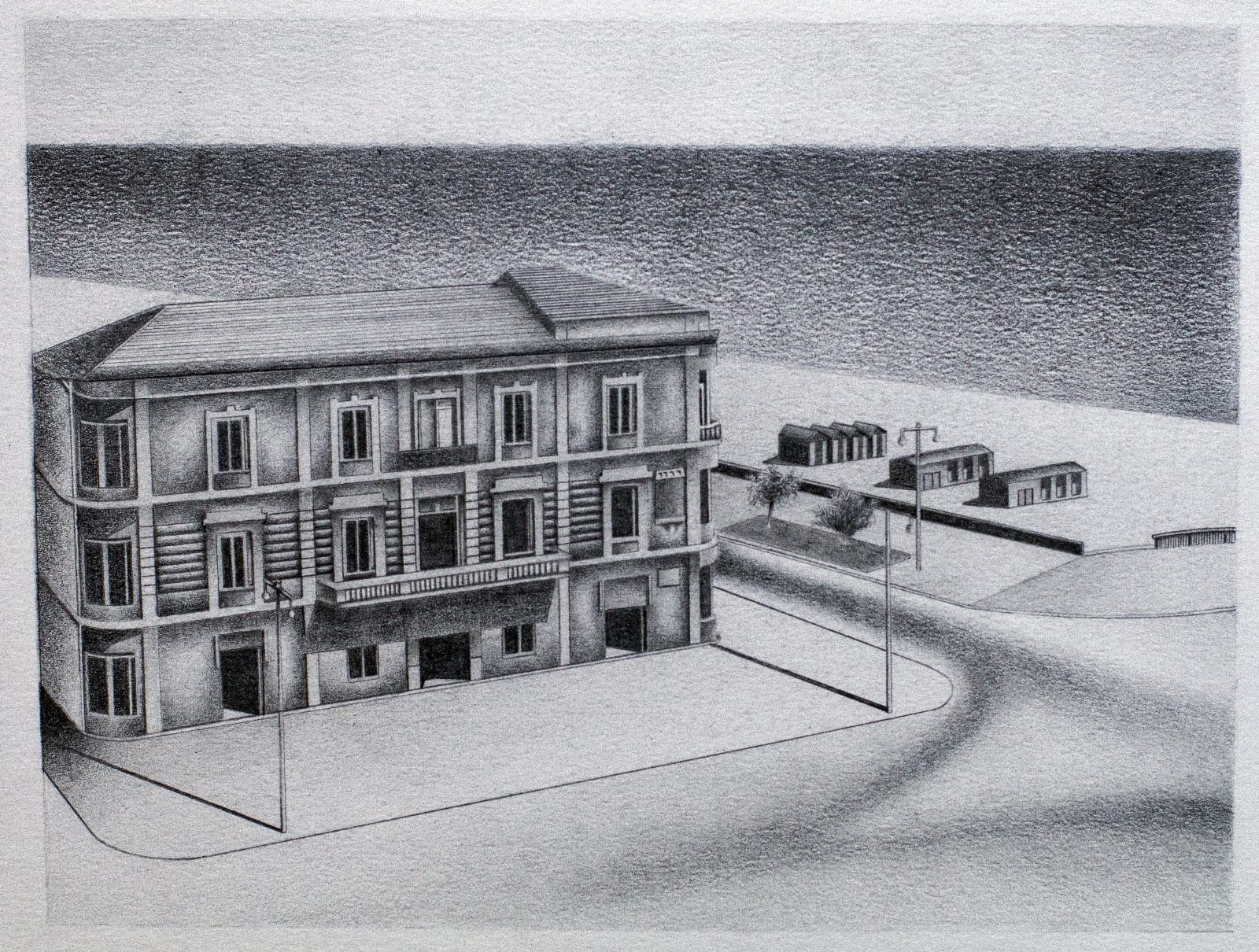 Disegno a mano, tecnica matita B N Teatro Pomponi di Pescara 15×20