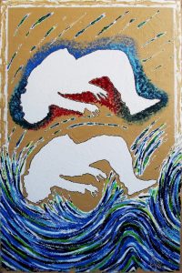 Ma non c’è solo questo: NESSUNO SI SALVA DA SOLO, il quadro cui OFF ha accordato la propria preferenza fra la produzione di Vandelli, è invece una “soteriologia” laica, una dottrina della salvezza in chiave pop, dove il Cristo è stupendamente uno e trino nei colori primari della pittura rosso giallo e blu.
