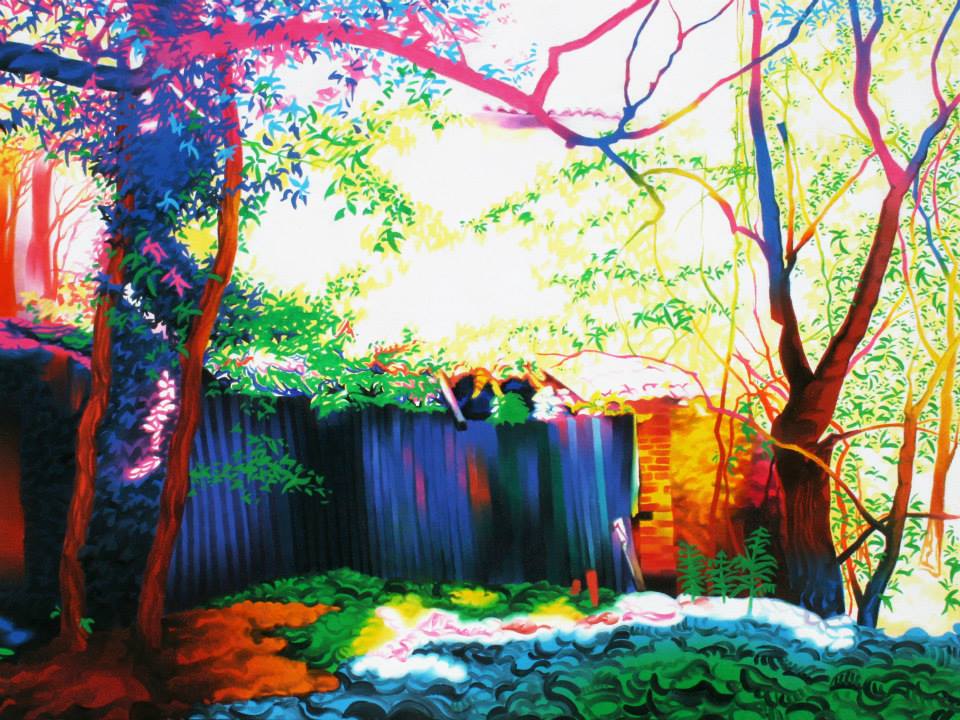 Erano gli anni fra il 2007 e il 2011, quelli della serie “dei libri”. Poi Davide Corona ha proseguito il lavoro della pittura sperimentando un tipo diverso di soggetto e composizione, senza tuttavia tradire se stesso: sono gli anni della colorazione “psichedelica” di luoghi abbandonati, ma senza fare ammuina con la solita estetica del luogo abbandonato.