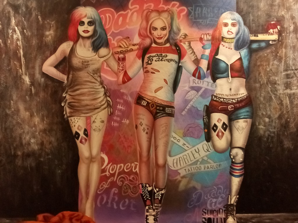 Ecco allora le “Bad Girls” di Suicide Squad, in pants aderenti e armate di mazze da baseball; ecco Spiderman e gli altri eroi Marvel, omaggio, sebbene involontario, all’appena scomparso Stan Lee; e poi ancora personaggi tratti da videogiochi, film horror, cartoni animati. Cattivi, anzi cattivissimi, sullo schermo o sulle pagine dei fumetti, ma in grado di darci l’illusione di un’infanzia che non potrà mai finire: “non a caso”, spiega l’artista, “io li ho conosciuti e amati guardandoli assieme a mia figlia, un’esperienza che mi riempie sempre di gioia”.
