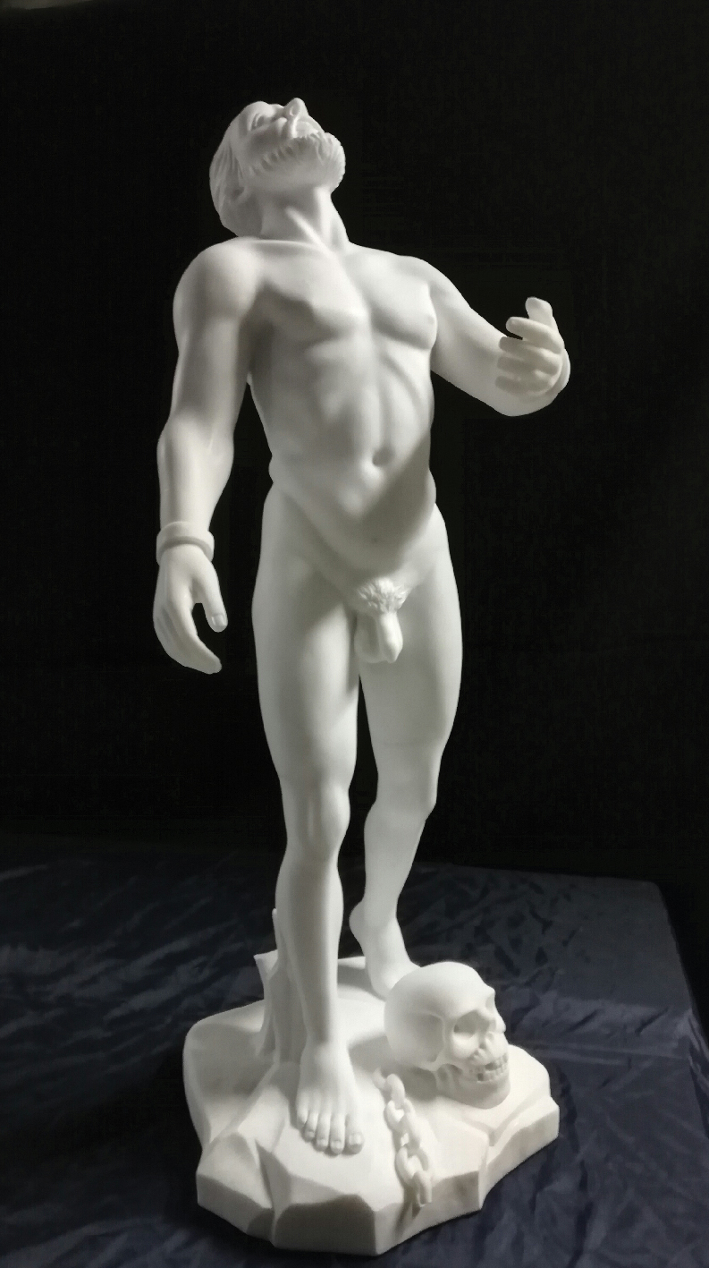 Classico e contemporaneo convivono nelle opere dello scultore Oliver Hurtado, dove le solenni pose della tradizione e il prestigioso marmo bianco di Carrara ci raccontano il mondo odierno, proprio come accade nell’opera Grido di libertà, il cui protagonista, un uomo nudo che sembra riecheggiare la statuaria michelangiolesca, urla verso il cielo in una posa che non si scompone completamente, senza perdere l’equilibrio formale.