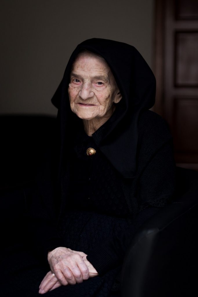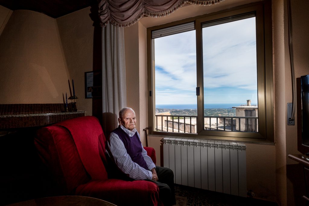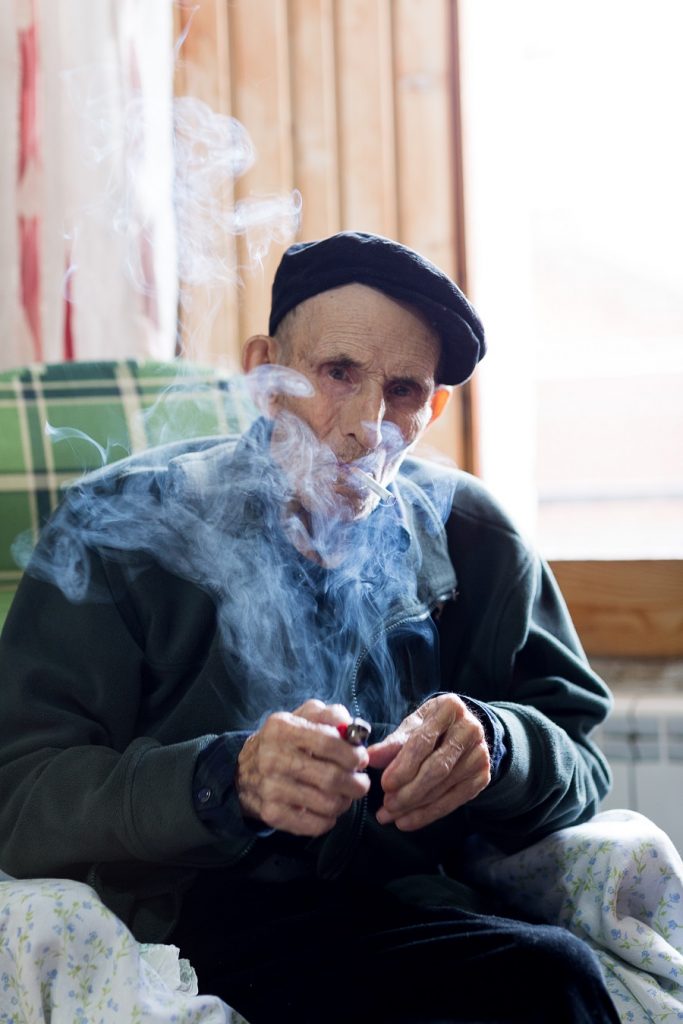 Eugenio fronteddu, 102 anni, nella sua casa di Talana, Ogliastra, mentre fuma una delle sue 40 sigarette al giorno Rosa Secci, anni 102, nella sua casa di Urzulei