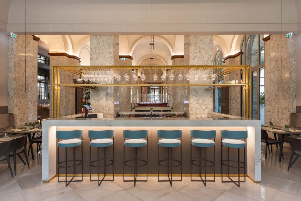 Vista mozzafiato dall’alto su piazza Sant’Oronzo, scorgendo il celebre anfiteatro e il campanile del Duomo che spicca fra le nuvole. Le scale marmoree, la casseforti, i giochi di luce che riflettono i raggi del sole disegnando, mediante una rinata bellezza, il domani dell’hôtellerie di lusso. E la tecnologia, immancabile nell’era 3.0, diventa protagonista e si fonde alla storia senza stravolgerla. Così, il BN Fintness center, per chi vuole dedicarsi al benessere e alla cura del corpo, offre un D-wall ed è dotato di tecnobody e uno specchio digitale per allenarsi come se si fosse alle prese con un vero personal trainer. La cassaforte che introduceva al caveau è attualmente la porta d’ingresso per lo spogliatoio del centro, la stanza del direttore si è tramutata in una delle 13 lussuose suite dai 40 ai 90 metri quadrati di ampiezza. Una narrazione estetica che si dipana dalla fine del 1800 quando, fiutando la possibilità che il palazzo potesse essere abbattuto, i cittadini leccesi organizzarono una protesta per difendere un pilastro della loro tradizione, pezzo di cultura avvolto dai barocchismi e dagli stucchi decorativi di chiese e residenze d’epoca. Tuffandosi nel lontano 1902, il Consiglio di amministrazione del Banco di Napoli approvò la proposta di edificare una succursale importante nel territorio pugliese, proprio a Lecce, e l’anno successivo acquisì l’area dall’amministrazione comunale, tramite un atto datato 25 aprile, commissionando la realizzazione dello splendido palazzo all’ingegnere Pasquale Ruggeri, che si era già occupato della rete di comunicazione tranviaria elettrificata tra la cittadina del Salento e la marina di San Cataldo, nel periodo in cui il Comune era guidato dal sindaco Giovanni Pellegrino. L’inconfondibile stile tardo-ottocentesco si compone di due piani fuori terra, accanto ad un sotterraneo, e dapprima si estendeva su una superficie di 1250 metri quadrati di cui 412 relativi a giardini laterali: il perimetro è tuttora visibile sui marciapiedi laterali che costeggiano le vie San Trinchese e Dei Mocenigo per la presenza di una linea tratteggiata di tozzetti in candido marmo bianco. Tutti gli elementi, identificativi e simbolici dei fasti precedenti, sono stati riusati e valorizzati. Tant’è che il bancone dell’elegante bar, fulcro dell’economia territoriale e di ingenti scambi monetari, è stato ripensato per il raffinato “Banco”, che vede al timone il bartender Mauro De Giosa, alchemico maestro della mixology, in un’esperienza immersiva accompagnata dalle suggestioni regalate dalle grate dei vecchi impianti di condizionamento riqualificate in stilosi tocchi vintage che sono parte integrante dell’arredamento. «L’intento del restyling era quello di dialogare con il mondo, conferendo un’atmosfera internazionale agli ambienti senza denaturarli. In questo caso la ristrutturazione è stata facile e, osservando le linee della committenza, nell’attività di remise en forme, durata oltre un anno, ho cercato di riutilizzare gli arredi già esistenti. Il palazzo era già referenziato, con una sua riconoscibilità definita e forte. Quindi, ho valutato gli spunti che ci dava per recuperare in modo fruibile gli oggetti e i decori dei luoghi. I banconi dei bancari assumono una nuova vita, perché credo nel ciclo della vite. Sia degli esseri umani che delle cose. I guardaroba, ad esempio, erano delle porte che abbiamo smontato per creare i passaggi antincendio. Allora li ho fatti diventare armadi. Così per quelle della stanza dei quadri amministrativi, diverse dalle altre bussole, che mantengono l’impronta del ricordo. La mia mente è molto fertile, ho rivolto lo sguardo ad una clientela reale e mondiale. Non solo locale.», spiega l’architetto leccese Lucia Bianco, che aggiunge «Mi sono ispirata al grattacielo Walkie Talkie Building di Londra: qui gli ospiti arrivano da ogni parte del pianeta solo per ammirare la terrazza-giardino».