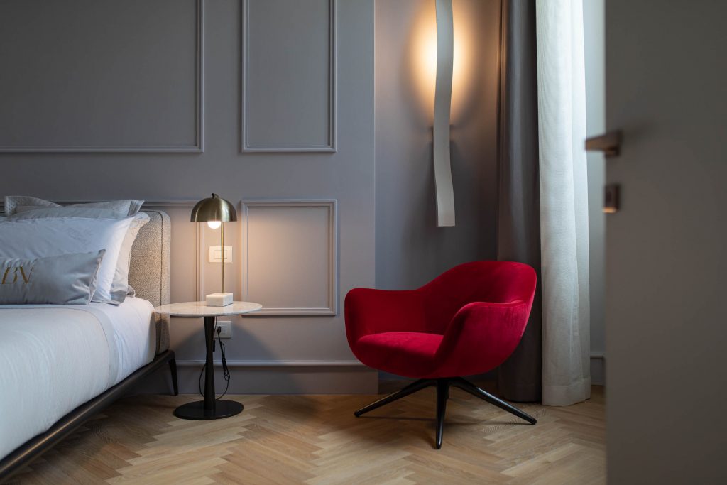 I marmi “verde Guatemala” tra le architetture razionaliste del 1933 di una dimora storica, immersa nel fascino del Barocco leccese. Abbracciando il fil rouge del “Movimento moderno” e richiamando alla memoria i principi del funzionalismo. Le venature originarie dei pavimenti, lasciate volutamente intatte quasi ad evocare le atmosfere rétro del passato, mescolate sapientemente al design contemporaneo nell’antica sede del Banco di Napoli dove, per molto tempo, addirittura si batteva moneta esattamente come accadeva per la Banca d’Italia. Lecce sorprende con le sue meraviglie architettoniche e, di fronte al Teatro Politeama, tempio della rinascita culturale della città salentina nonostante la pandemia, Palazzo BN “è la storia che si fa storia”. Un progetto innovativo e visionario, ideato dall’ex banchiere italo-svizzero Renè De Picciotto, da sempre amante dell’Italia e, soprattutto, della Puglia con i suoi uliveti e le masserie che sorgono sui paesaggi bucolici. Dopo la crisi economica del 1929, in pieno regime fascista, la banca segnò il decennio degli anni ’30 e oggi, attraverso un minuzioso e attento intervento di restauro, che ha consentito di recuperarne gli arredi e l’intero complesso, si è trasformata in un luxury hotel con ben 13 appartamenti fino al roof garden, primo giardino pensile cittadino, e una Food Court considerata la culla della gastronomia al piano terra dei recuperati spazi d’antan. «Palazzo BN insiste su un’area di antica pertinenza militare. È dirimpetto al bastione nord-est del castello, oggi non visibile poiché inglobato nella costruzione del Teatro Politeama Greco. Nel XVI secolo il sito sembrò ottimale per la costruzione di un palazzo di giustizia e di una cappella dedicata a San Demetrio, edificati ad opera del famoso architetto militare Gian Giacomo dell’Acaya, cui si deve la fabbrica del castello nonché l’edificazione della cinta muraria. Nel 1755 i resti dell’edificio preesistente, con il caratteristico portale catalano-durazzesco, furono inglobati nella nuova struttura progettata dall’architetto Mauro Manieri artefice del Palazzo della Regia Udienza, avente inizialmente funzione di tribunale civile e penale, nonché di carcere, e posto di polizia urbana. Sino ad essere adibito a caserma militare nel 1865 con la denominazione di Caserma San Martino», fanno sapere dalla proprietà.