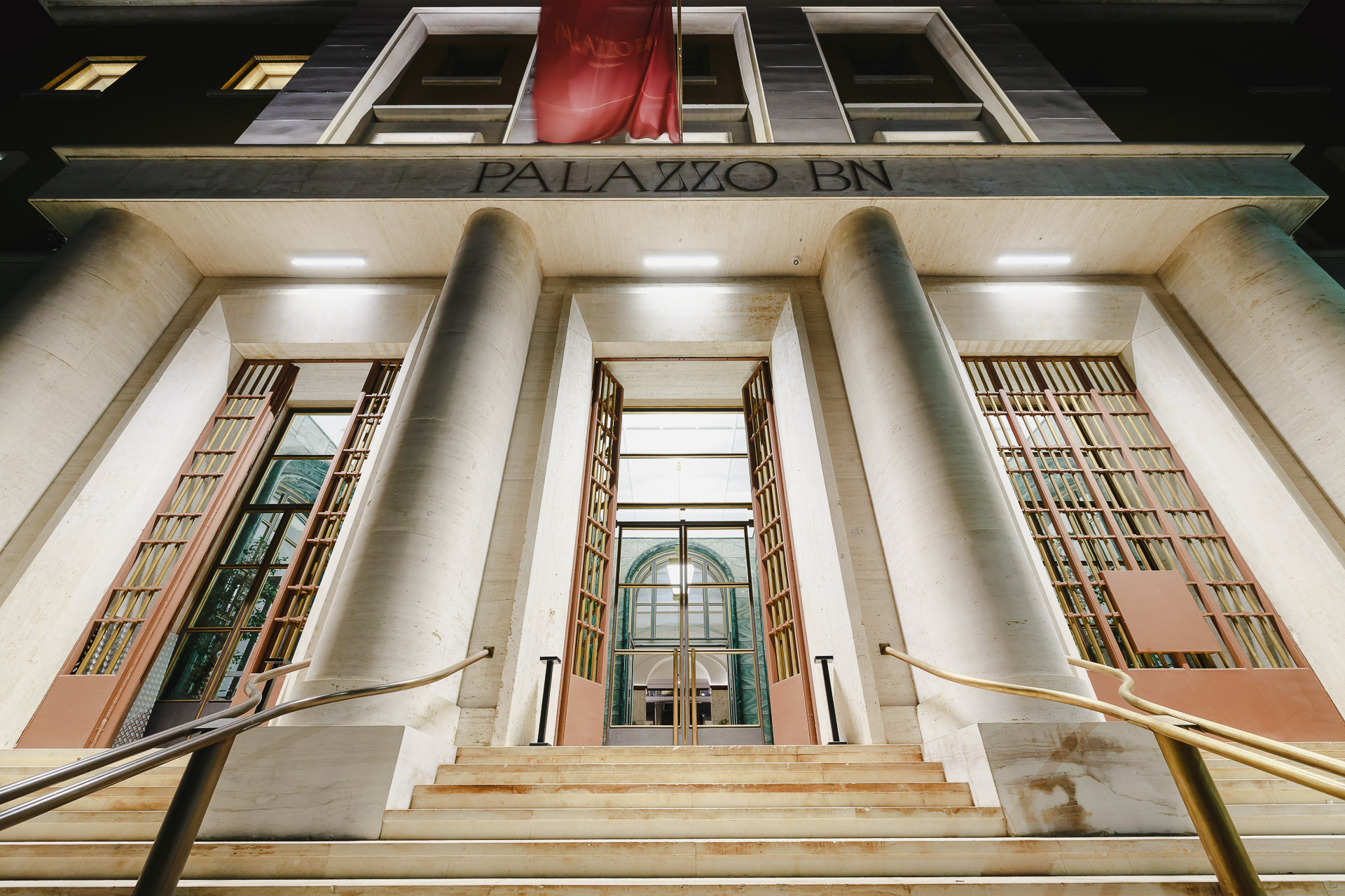 I marmi “verde Guatemala” tra le architetture razionaliste del 1933 di una dimora storica, immersa nel fascino del Barocco leccese. Abbracciando il fil rouge del “Movimento moderno” e richiamando alla memoria i principi del funzionalismo. Le venature originarie dei pavimenti, lasciate volutamente intatte quasi ad evocare le atmosfere rétro del passato, mescolate sapientemente al design contemporaneo nell’antica sede del Banco di Napoli dove, per molto tempo, addirittura si batteva moneta esattamente come accadeva per la Banca d’Italia. Lecce sorprende con le sue meraviglie architettoniche e, di fronte al Teatro Politeama, tempio della rinascita culturale della città salentina nonostante la pandemia, Palazzo BN “è la storia che si fa storia”. Un progetto innovativo e visionario, ideato dall’ex banchiere italo-svizzero Renè De Picciotto, da sempre amante dell’Italia e, soprattutto, della Puglia con i suoi uliveti e le masserie che sorgono sui paesaggi bucolici. Dopo la crisi economica del 1929, in pieno regime fascista, la banca segnò il decennio degli anni ’30 e oggi, attraverso un minuzioso e attento intervento di restauro, che ha consentito di recuperarne gli arredi e l’intero complesso, si è trasformata in un luxury hotel con ben 13 appartamenti fino al roof garden, primo giardino pensile cittadino, e una Food Court considerata la culla della gastronomia al piano terra dei recuperati spazi d’antan. «Palazzo BN insiste su un’area di antica pertinenza militare. È dirimpetto al bastione nord-est del castello, oggi non visibile poiché inglobato nella costruzione del Teatro Politeama Greco. Nel XVI secolo il sito sembrò ottimale per la costruzione di un palazzo di giustizia e di una cappella dedicata a San Demetrio, edificati ad opera del famoso architetto militare Gian Giacomo dell’Acaya, cui si deve la fabbrica del castello nonché l’edificazione della cinta muraria. Nel 1755 i resti dell’edificio preesistente, con il caratteristico portale catalano-durazzesco, furono inglobati nella nuova struttura progettata dall’architetto Mauro Manieri artefice del Palazzo della Regia Udienza, avente inizialmente funzione di tribunale civile e penale, nonché di carcere, e posto di polizia urbana. Sino ad essere adibito a caserma militare nel 1865 con la denominazione di Caserma San Martino», fanno sapere dalla proprietà.