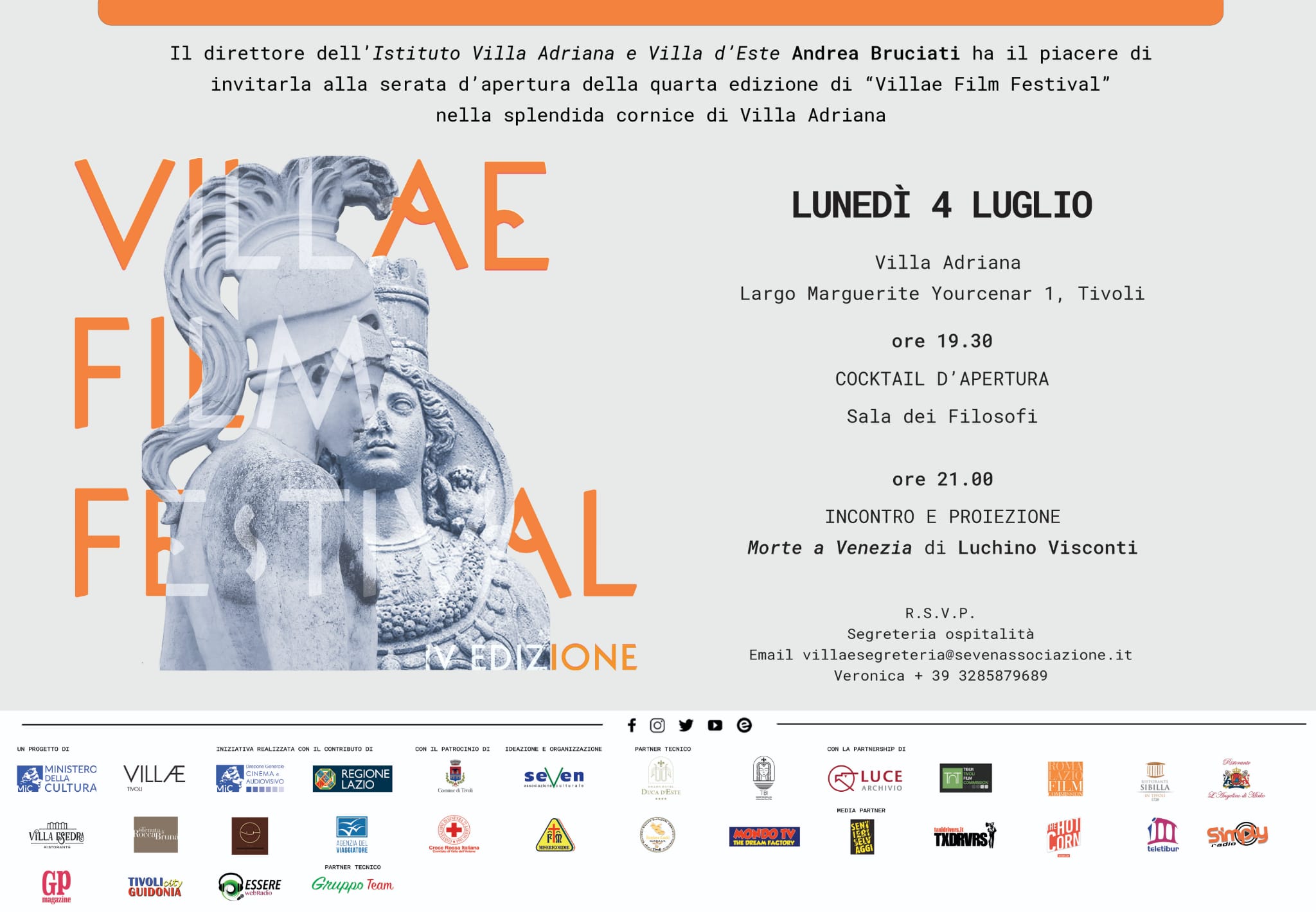 Dal 4 al 10 e dal 18 al 24 luglio 2022 due siti dichiarati dall’UNESCO Patrimonio Mondiale dell’Umanità, Villa Adriana e Villa d’Este, ospitano la IV Edizione di Villae Film Festival, rassegna da sempre dedicata a CINEMA e ARTE. Il progetto è realizzato con il patrocinio e il sostegno del MiC e della Regione Lazio e organizzato dalle Villae, sotto la direzione artistica di Andrea Bruciati, storico dell’arte e direttore dell’Istituto Villa Adriana e Villa d’Este, con la consulenza artistica di Stefania Bianchi e Filippo Soldi e l’organizzazione dell’Associazione Culturale Seven. Nella sua duplice articolazione a Villa d’Este e a Villa Adriana, Villae Film Festival quest’anno affronta il grande tema della Bellezza. Lo fa proponendo film che ne hanno indagato le molteplici ripercussioni e sfaccettature con un linguaggio che guarda proprio all’Arte. Bellezza come motivo di meraviglia, di turbamento, bellezza negata, bellezza splendente e bellezza nascosta. Bellezza come ossessione e bellezza fine a sé stessa: che lo si ammetta o no, spesso la bellezza determina le nostre scelte e informa la nostra vita.