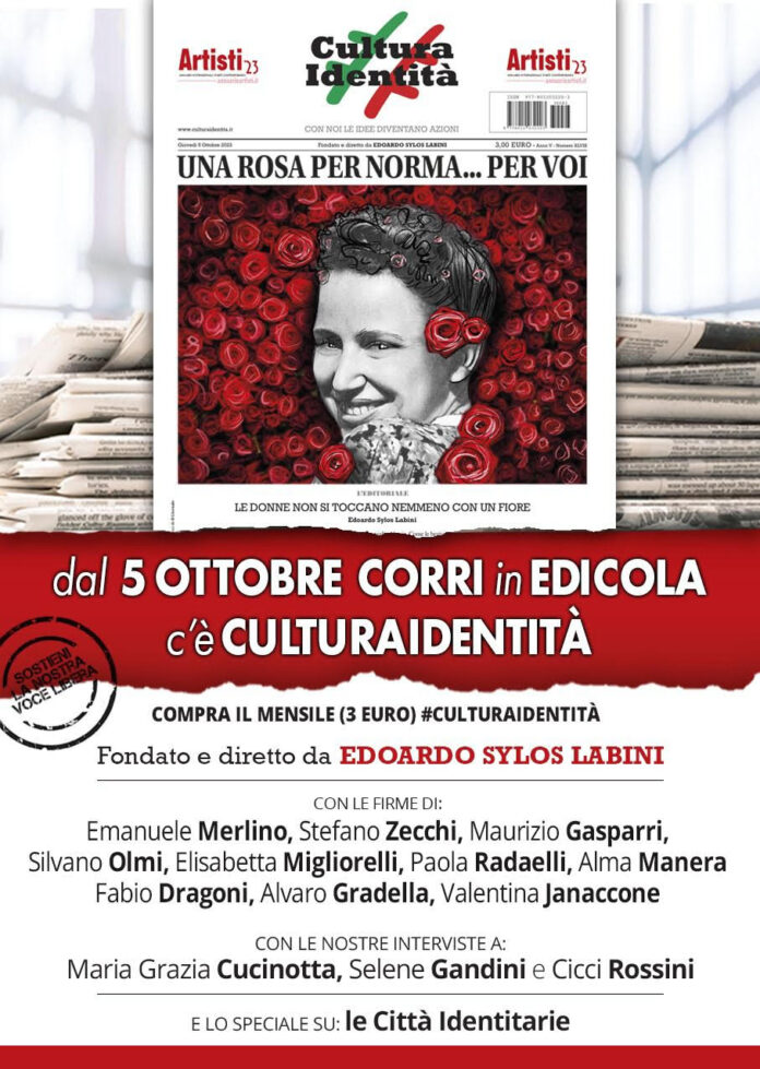 Con un numero interamente dedicato al ricordo di Norma Cossetto e alle donne vittime di violenza, è in edicola da giovedì 5 ottobre CulturaIdentità, il mensile fondato e diretto da Edoardo Sylos Labini.