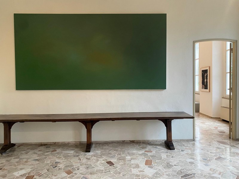 Interrogata su quale potrebbe essere una rappresentazione più esplicita del sacro oggi nella società odierna, Chiara Cappellini propone due monocromi, due acrilici su tela, uno verde, l’altro nero, di grandi dimensioni, quattro metri per due, che portano entrambi lo stesso titolo: Noghtinness, che in inglese vuole dire vuoto. Dopo essersi diplomata alla Naba di Milano e alla Rhode Island School of Design a Providence in America, l’artista milanese inizia il suo percorso artistico da freelance come illustratrice, grafica e art director. La ricerca artistica sul concetto di vuoto esplode, racconta, con l’incontro a Beaune, in Francia, con John Ellis, fisico teorico del King’s College di Londra e del CERN., ii “padre” dell’esperimento scientifico più avanzato mai effettuato: la conoscenza delle più piccole particelle di materia che stanno alla base delle forze che hanno dato origine all’Universo. Racconta entusiasta Capellini: “Sono sempre stata affascinata dall’invisibile, da una realtà altra diversa da quella che i nostri sensi ci permettono di sperimentare. Sappiamo che il mondo è pieno di sostanze che le mani non possono toccare o afferrare, di organismi microscopici che i nostri occhi non possono vedere, di fenomeni presenti attorno a noi, ma che restano invisibili. Miliardi stelle, di pianeti, di galassie. Mondi sparsi in quel grande contenitore chiamato cosmo, o se preferite Universo. Perché c’è qualcosa invece del nulla? Di che cosa è fatto il vuoto?. La teoria quantistica ci rivela che nello spazio cosmico non c’è uno stato di vuoto assoluto, ovvero non c’è il nulla, ma anche nel vuoto è sempre presente qualcosa, fluttuazioni quanto-meccaniche ,un ribollire di coppie di particelle virtuali che nascono e si annichilano in continuazione”. Partendo dalle suggestioni della fisica quantistica sul concetto di vuoto, nascono così i due monocromi sul concetto di vuoto. L’artista assimila lo stesso gesto pittorico, che si focalizza su azioni come il mettere e togliere colore, alla danza delle particelle quantiche e la scelta di dipingere opere che all’apparenza possono rappresentare “il vuoto ” invita ad interrogarci sul mistero dell’Universo. Non solo. Le due opere sono collocate in due stanze diverse ma parlano fra loro a distanza, assicura Chiara Cappellini. A spiegarlo è ancora la fisica quantistica, con l’entanglement (che in italiano traduciamo come “intreccio”). Uno dei fenomeni più misteriosi, e tuttora sostanzialmente inspiegati, inspiegabili che regolano l’Universo. “Oggi i fisici quantistici hanno scoperto una straordinaria capacità delle particelle quantiche, quasi magica: quella di influenzarsi istantaneamente a vicenda, anche a distanza, presentando un legame che va al di là del tempo e dello spazio”.
