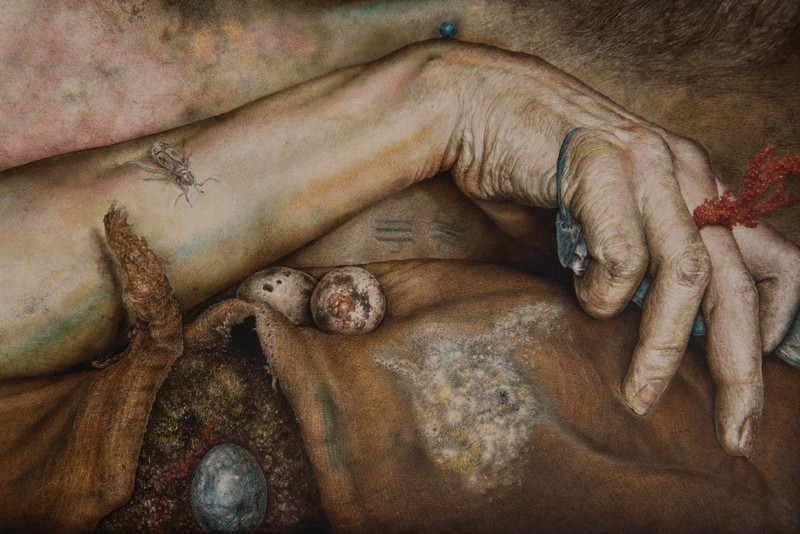 Enrica Berselli, Pharmakopita, 2024, Olio su tavola, 30,4 per 200 cm in due parti, dettaglio2