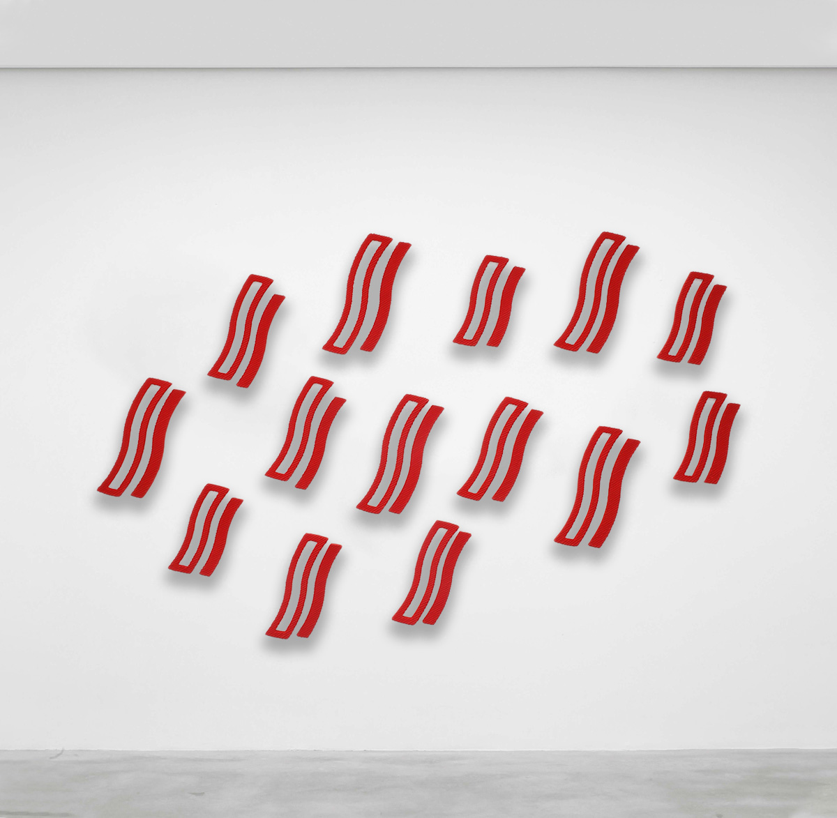 Frammenti disposti secondo un’armonia che sembra replicare sonorità musicali. “L’analogia con la musica è stata notata da molti critici“, osserva ancora Alessandra Pinelli. “Papà ha sempre lavorato con la musica accesa, in particolare ascoltava il suo amatissimo Bach. Il Preludio in Do Maggiore BWV 846, lo ha voluto per la mostra allestita a Palazzo Reale di Milano nel 2018 per accompagnare la fruizione dei I cinque movimenti una monumentale installazione che si compone della disseminazione di un centinaio di elementi materici creati con l’uso del colore rosso, dal particolare timbro cromatico (risultante di 5 rossi diversi) che illustra l’alternanza dei cinque movimenti musicali: il ritmo grave, l’andante e il mosso, fino al brio e all’adagio“.