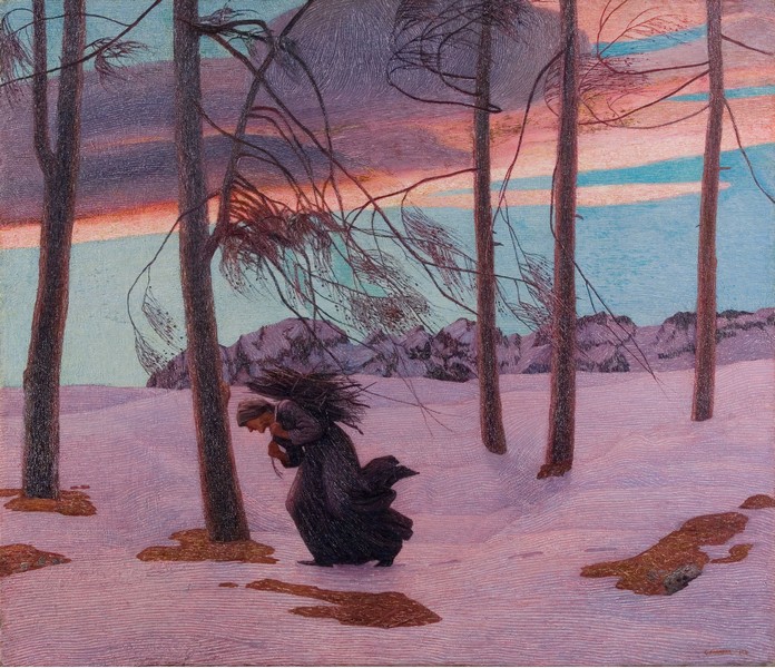 Nel quadro L’aquilone del pittore piemontese Carlo Fornara una donna con la fascina di arbusti sulle spalle cammina incurvata sotto l’impetuosa forza delle raffiche dell’Aquilone, vento di tramontana. Un’emozionante luce vespertina illumina il cielo e le nuvole di un rosa brillante, nello splendore cromatico della neve. E dello stesso autore Fine d’autunno in Valle Maggia (1908 circa), che documenta l’ultimo taglio del fieno nella luce malinconica dell’autunno.
