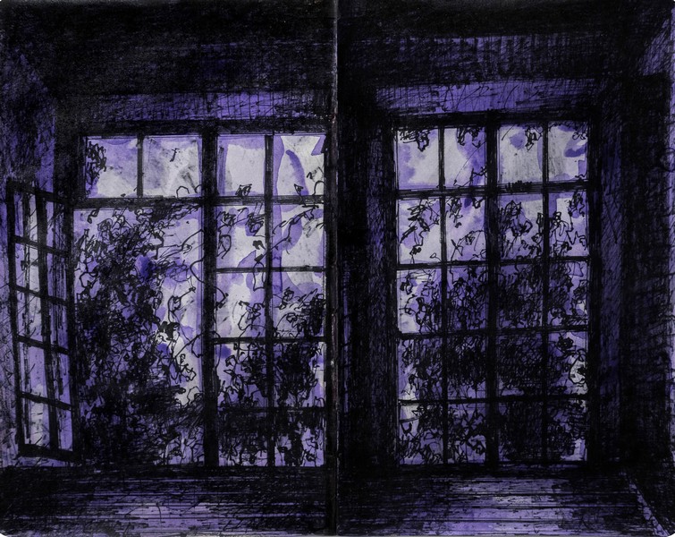 Dalle prime figure a inchiostro nero alle architetture contemporanee di eco “pittorialista” comprensive di una gamma cromatica blu-grigie per definire luoghi mentali, sei passato a tonalità quasi azzurrate, e in alcuni disegni recenti hai introdotto gialli, viola e verdi accessi, cosa è successo?