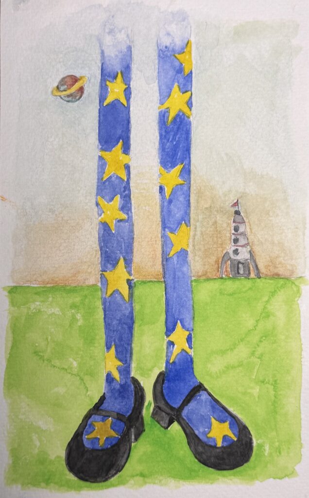 La tavolozza è chiara, luminosa, punteggiata da tonalità accese che rimandano a una dimensione infantile, quasi fiabesca. Le gambe diventano segni grafici, colonne verticali che dividono lo spazio e insieme lo ricompongono, come se disegnassero un linguaggio segreto. È un alfabeto visivo che non ha bisogno di parole: sono i colori, i motivi, gli sfondi mutevoli a guidare lo spettatore verso un significato che non vuole mai essere definitivo.