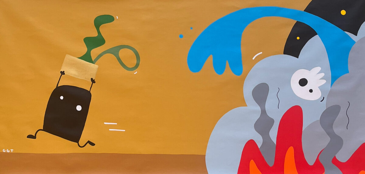 GGT si muove da sempre ai margini dei circuiti più istituzionali, costruendo una ricerca indipendente che trova nella sintesi il proprio strumento critico. Dipinti, animazioni, oggetti: ogni supporto diventa occasione per ribadire una stessa urgenza, quella di comunicare senza filtri, mantenendo aperta la possibilità di una lettura più profonda. L’accessibilità, in questo senso, non è semplificazione ma scelta etica.