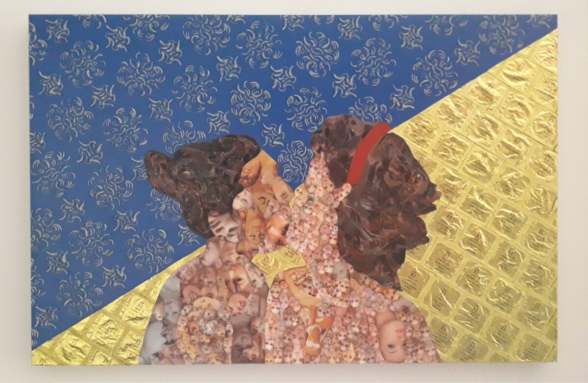 Avvicinarsi alle opere è fondamentale. Solo nella prossimità emergono le stratificazioni: “le miriadi di volti ritagliati e giustapposti… ferite, lacerazioni, ecchimosi” che compongono la superficie. Un’orgia di fisionomie, tutte a occhi chiusi, che rende visibile l’invisibile: la memoria della colpa.